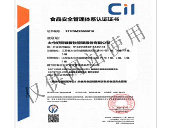 食品安全管理體系認(rèn)證證書…