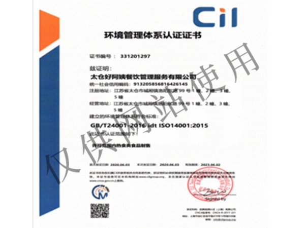 環(huán)境管理體系認(rèn)證證書
